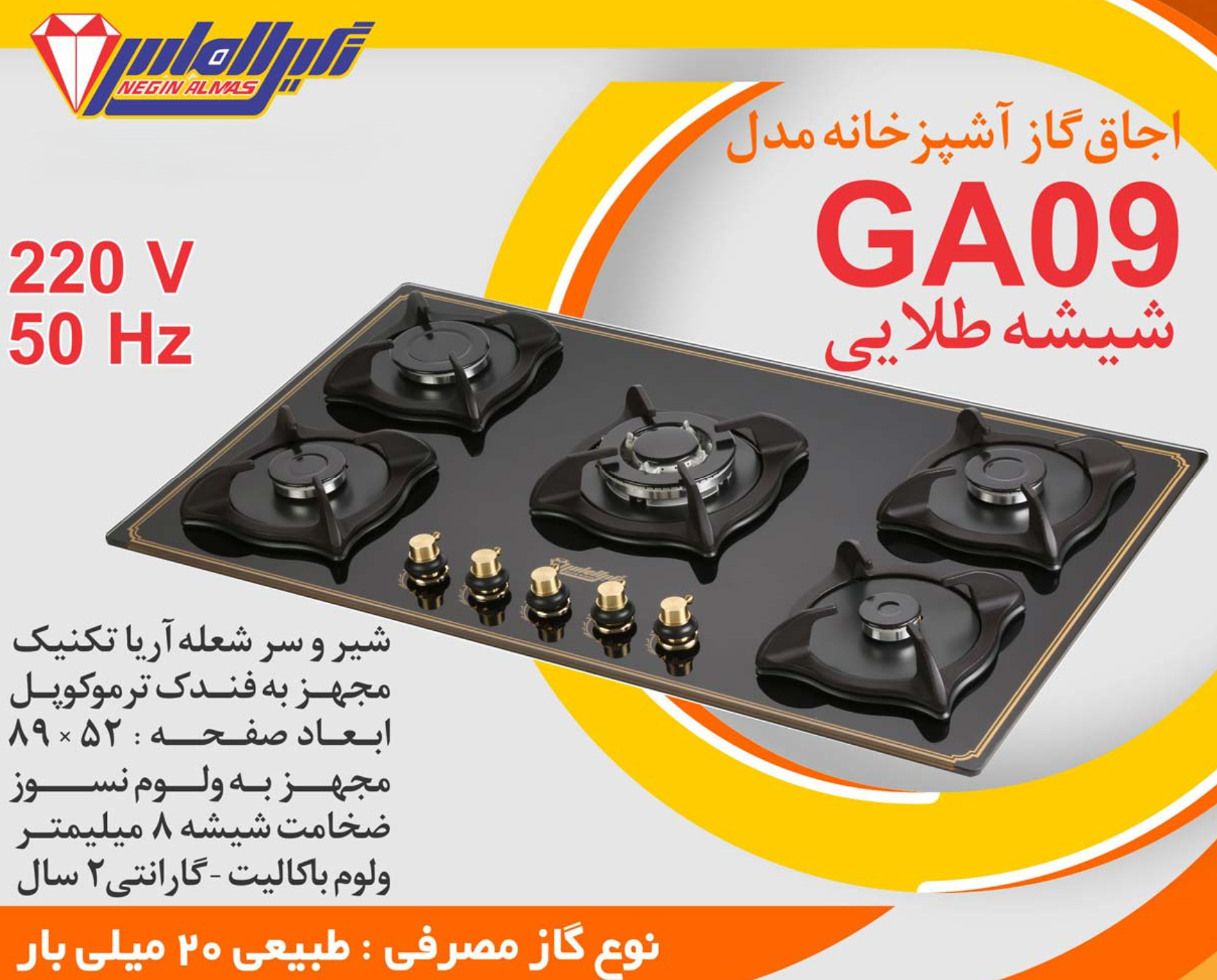 اجاق گاز صفحه شیشه ای نگین الماس کد GA09 ابعاد 52×89