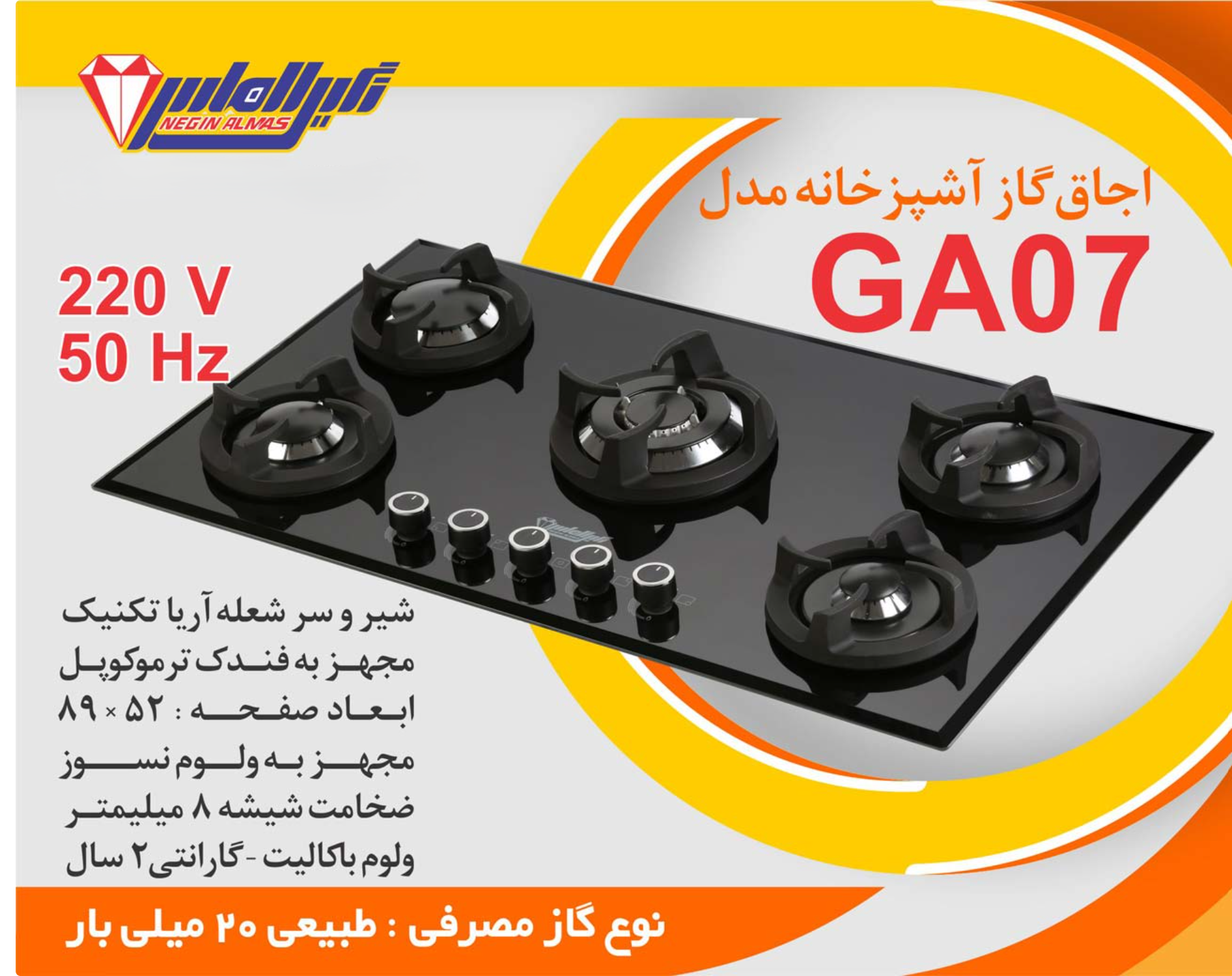 اجاق گاز صفحه شیشه ای نگین الماس کد GA07 ابعاد 52×89