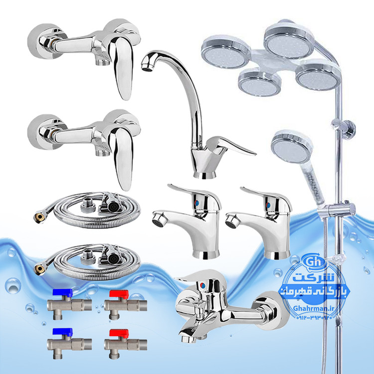 ست ۱۳ عددی شیرآلات برند آیدا صنعت مدل قهرمان اردکی | شیر ظرفشویی + دو عدد شیر روشویی + شیر حمام + شیر توالت + علم دوش یونیورست مدل هلی شاتی + دو عدد شلنگ توالت + دو عدد شلنگ استیل + چهار عدد شیر پیسوار | کروم براق