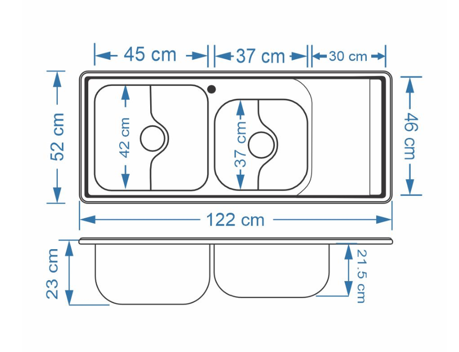 سینک فانتزی توکار SA107 سایز 52×122 عمق 23
