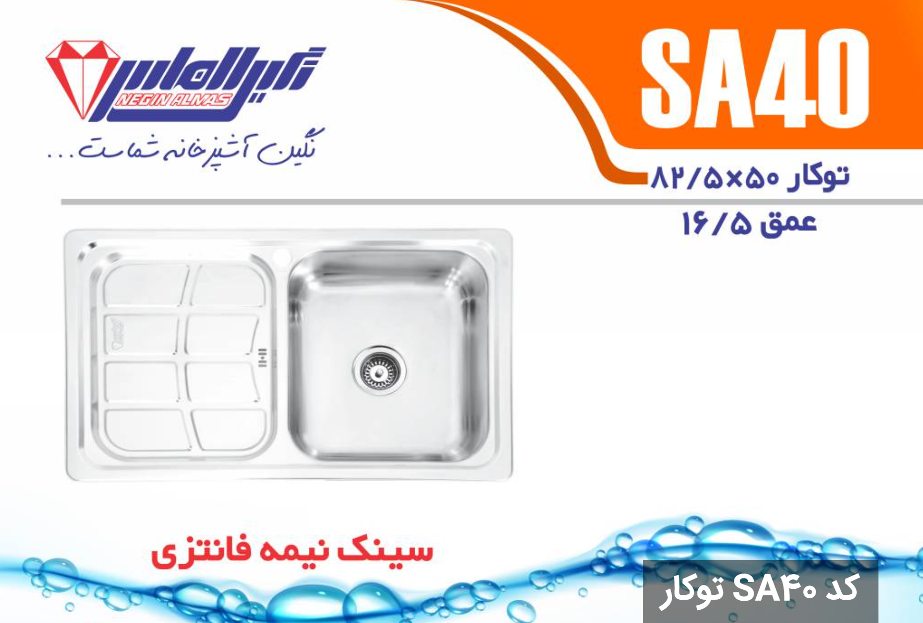 سینک نیمه فانتزی توکار SA40 سایز 50×82/5 عمق 16/5