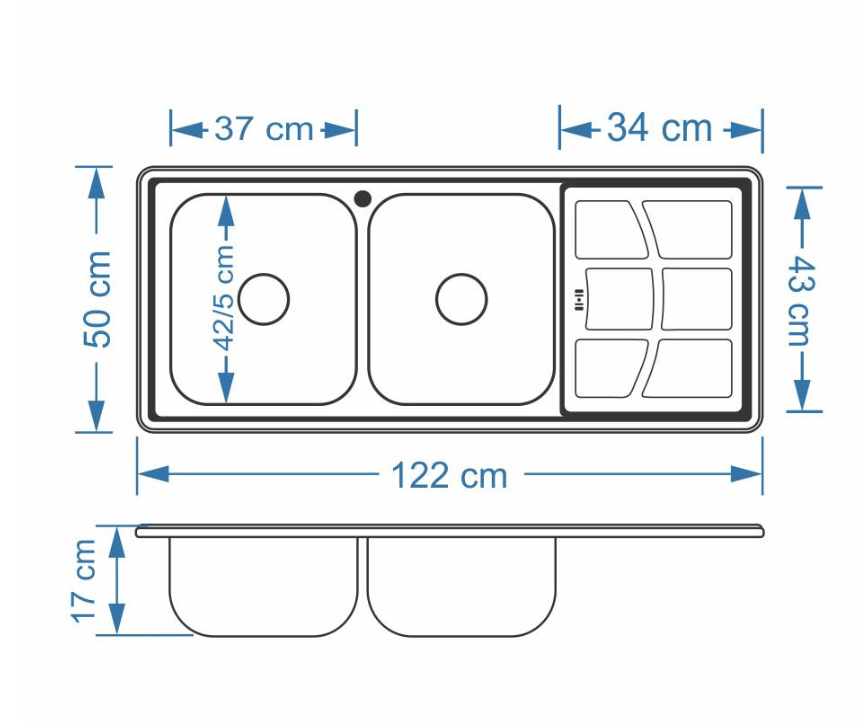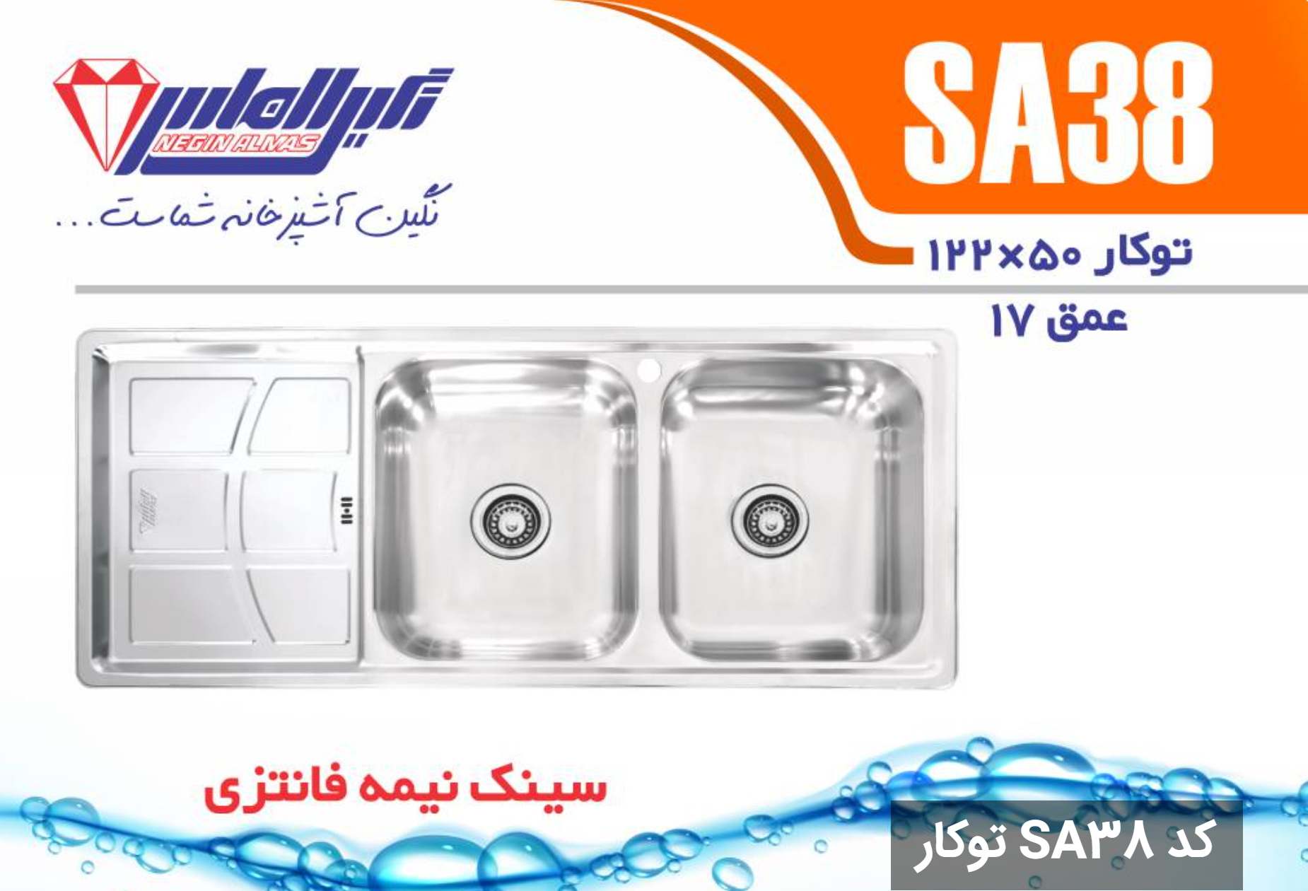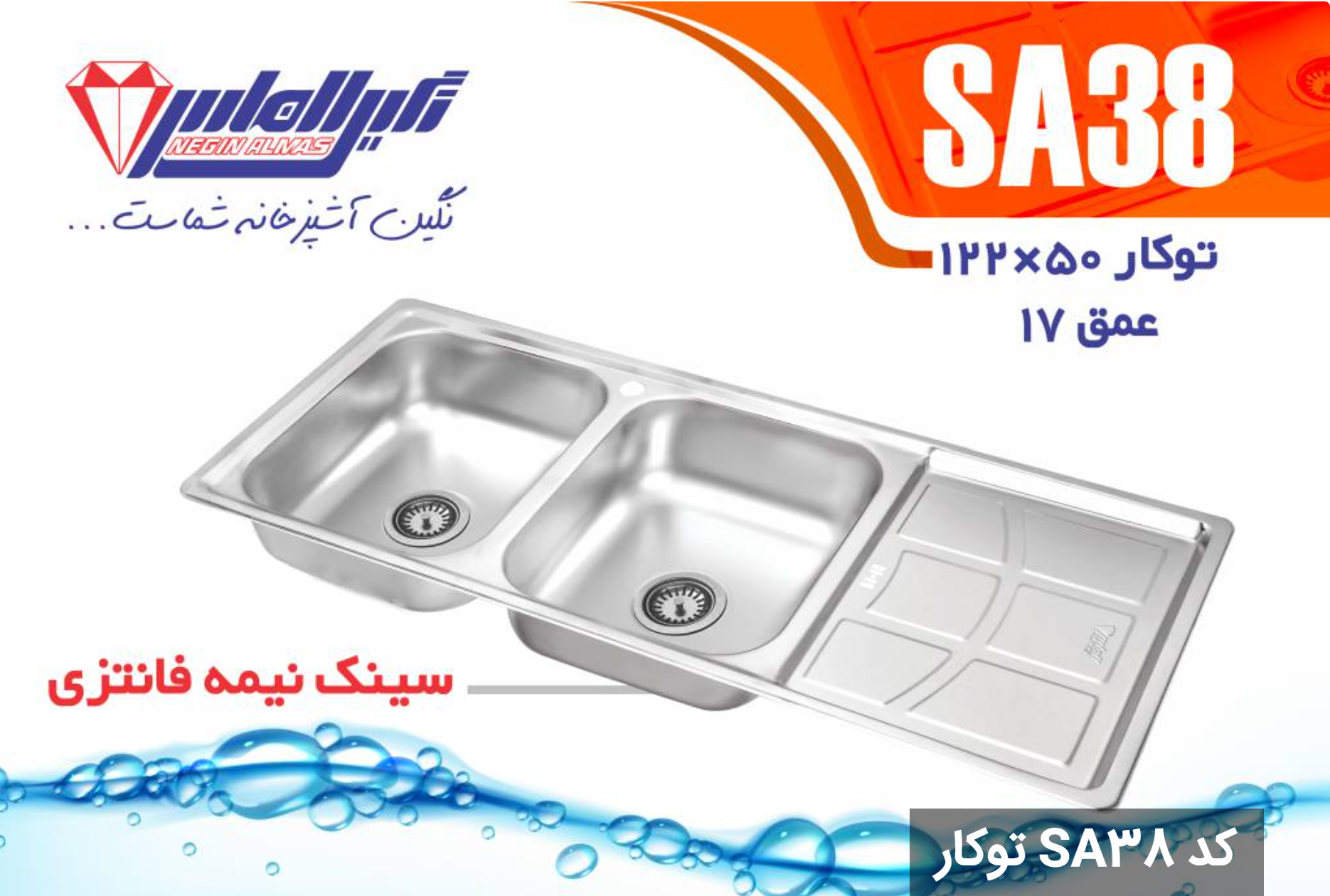 سینک نیمه فانتزی توکار SA38 سایز 50×122 عمق 17