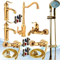 ست 15عددی شیرآلات بامبو طلایی باعلم دوش یونیکا طلایی