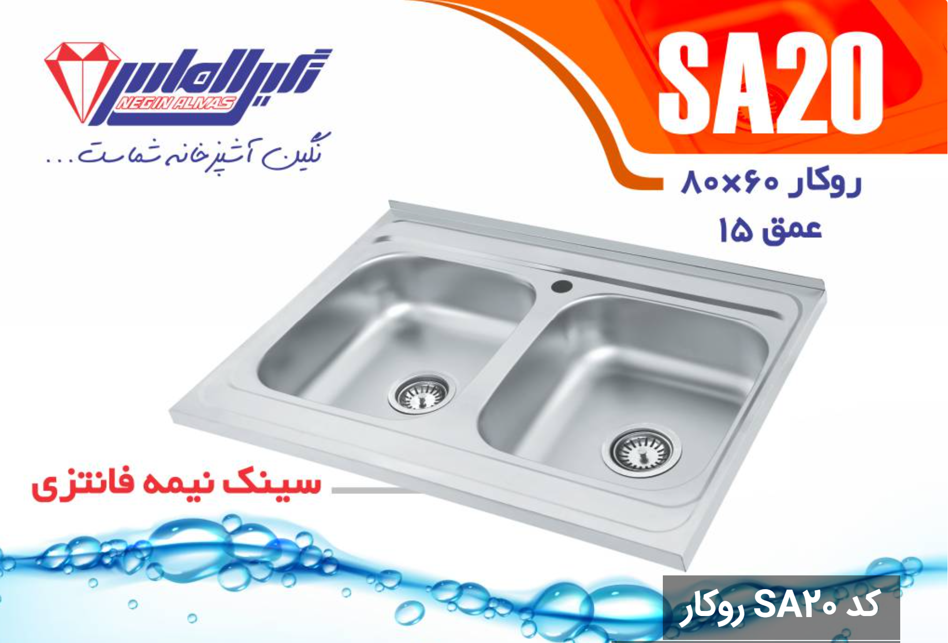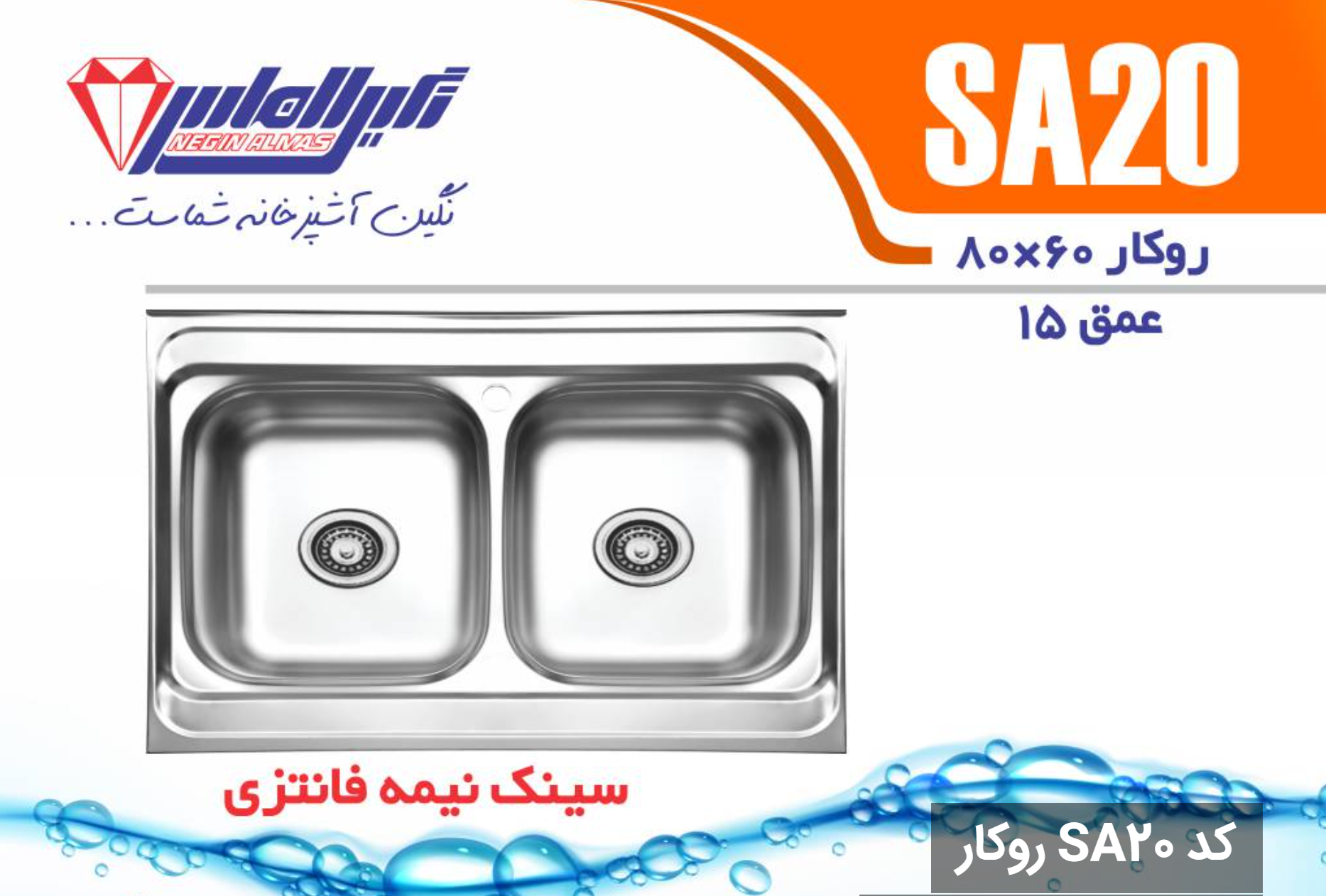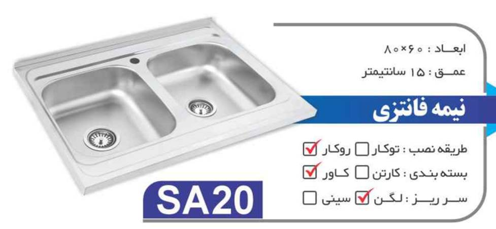 سینک نیمه فانتزی روکار کد SA20 سایز 60×80 عمق 15