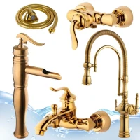 ست کامل شیرآلات اهرمی بامبو پلاس طلایی سنگین وزن
