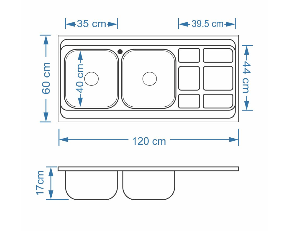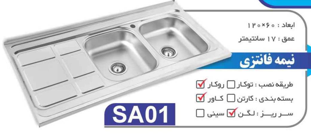 سینک نیمه فانتزی روکار کد SA01 سایز 60×120 عمــق 17